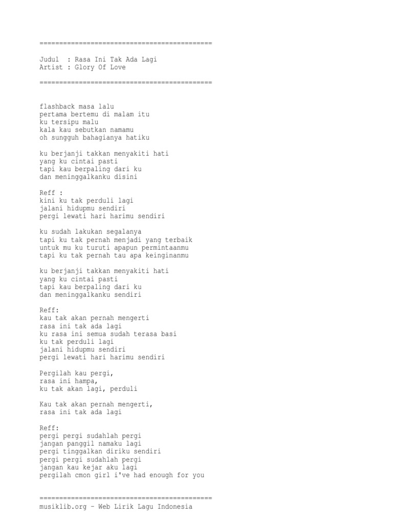 Glory Of Love Rasa Ini Tak Ada Lagi Lirik Lagu Pdf